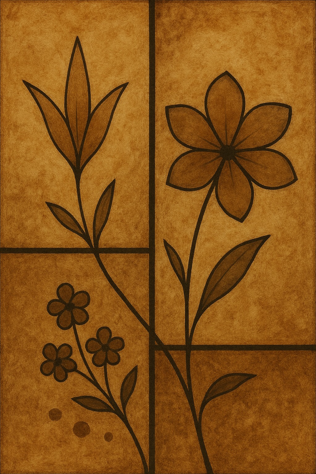 Add a timeless charm to your decor with this sepia-toned floral abstract wall art. The warm brown hues and subtle vintage finish make it an ideal piece for rustic, farmhouse, boho, or minimalist interiors. This digital artwork features an elegant floral layout split into soft geometric panels, echoing both modern style and nostalgic warmth.