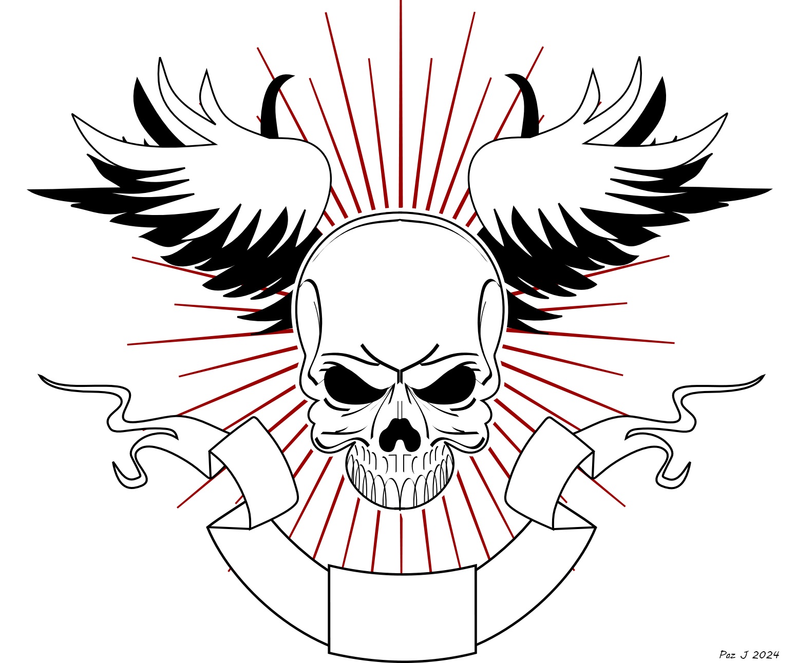 This striking “Skull with Wings” digital art showcases a fierce skull with wide wings and a blank banner below—ideal for personalization. With strong gothic and tattoo-inspired elements, the design radiates rebellious energy and dark artistry. Red rays burst behind the skull, giving the image depth and power, while the blank banner offers space for custom text or slogans.
