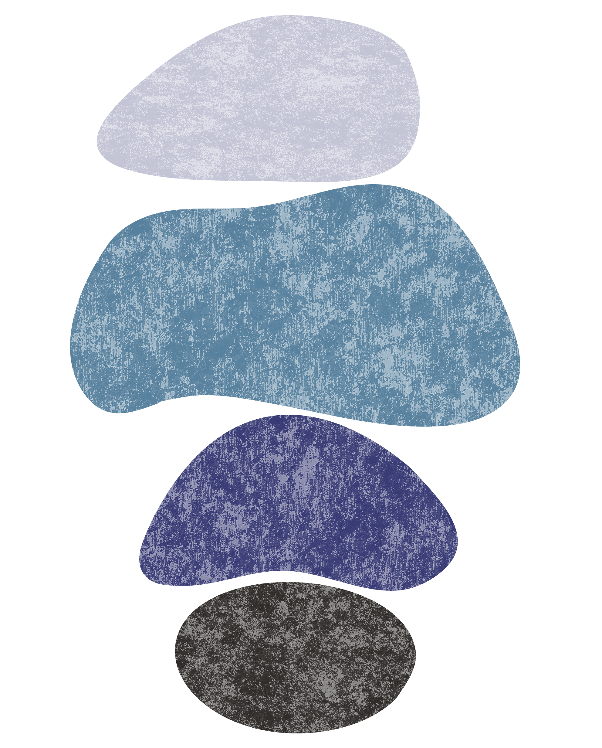 A vertical arrangement of textured organic shapes in calming blue and charcoal hues—perfect for modern décor, wellness branding, and minimalist digital design.