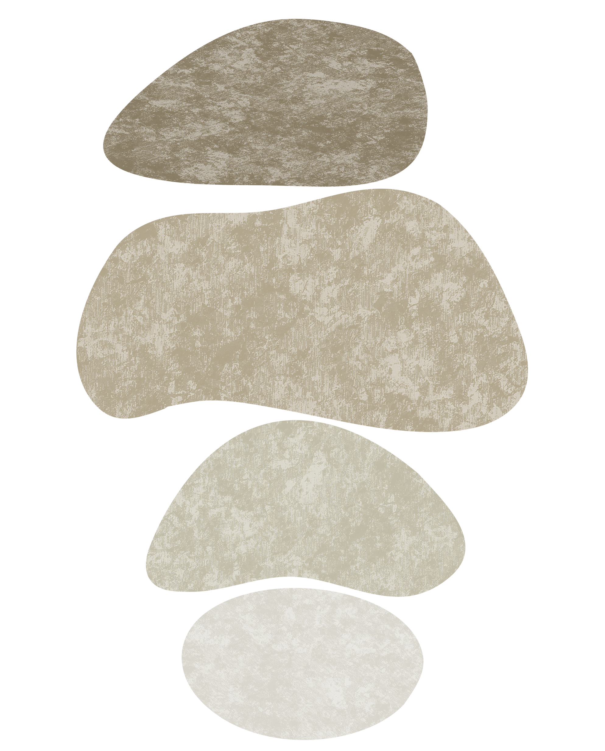 This abstract digital artwork presents a calming, balanced composition of stone-like shapes stacked vertically in a gradient of earthy neutrals—from deep taupe to soft ivory. The organic curves and textured finish echo natural materials, creating a serene visual rhythm that embodies groundedness and inner peace. Designed with minimalist elegance, it complements Japandi, Nordic, or eco-modern spaces and also works beautifully in branding for wellness, interior design, or sustainable products. Ready for digital use or high-quality printing, it’s perfect for posters, packaging, social media content, and minimalist home décor.